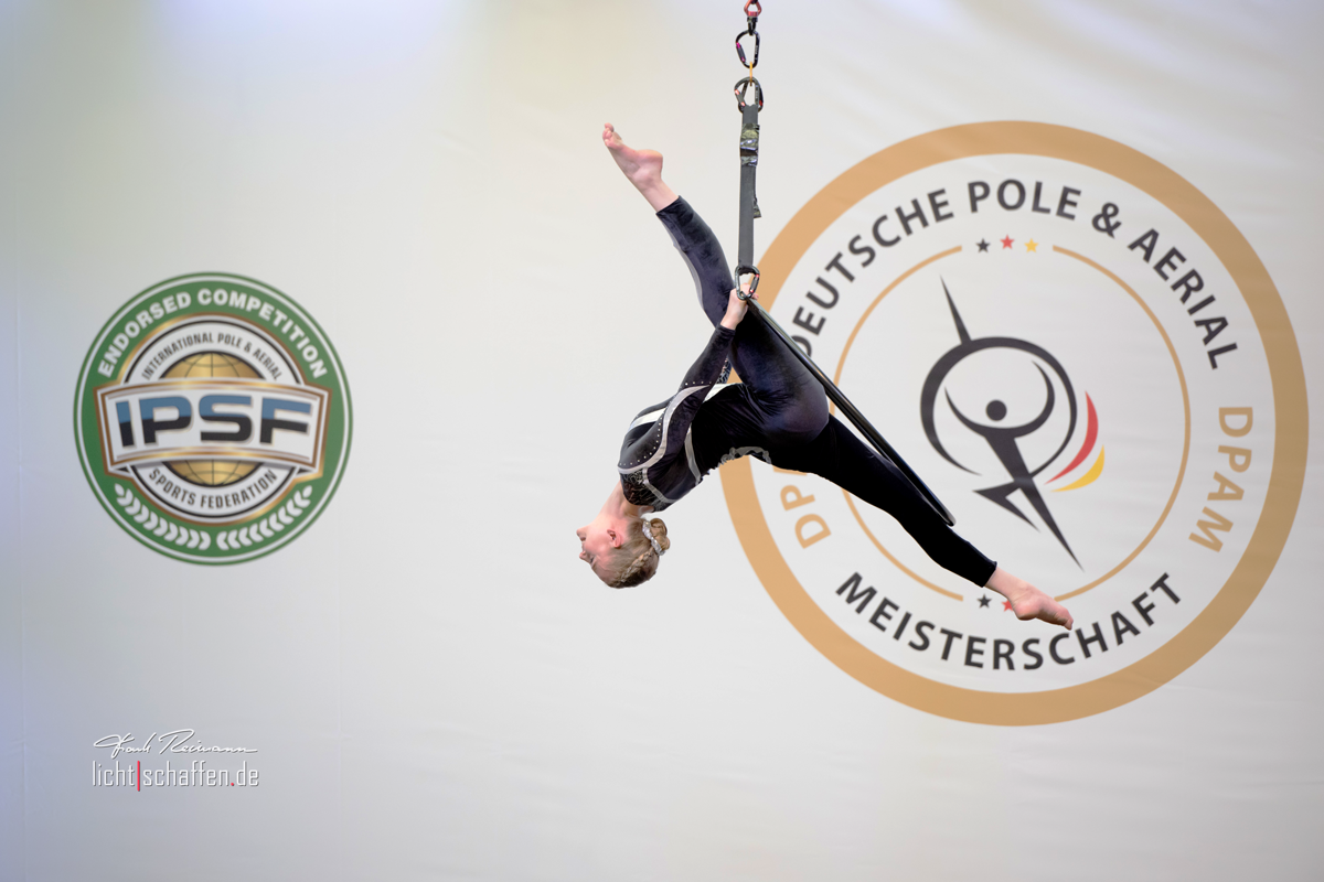 Mit dieser Choreo habe ich das Ticket für die WM 2024 in Schweden gelöst. Außerdem in den Kategorien Aerial Hoop Double Senior, Aerial Pole Double Senior, Aerial Hoop Group und Aerial Hoop Sport Senior.